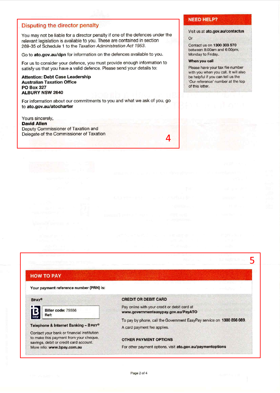 The second page of a Director Penalty Notice provides an option to dispute a DPN and instructions for paying the debt, both crucial aspects when navigating ATO director personal liability.
